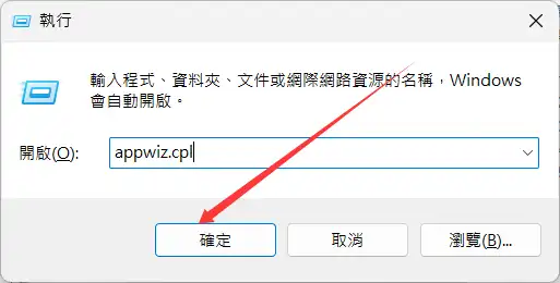 鍵,打開「執行」視窗。輸入 appwiz.cpl